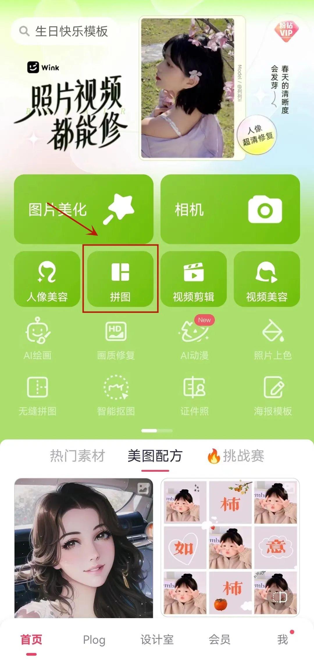 进入主页,【拼图】功能