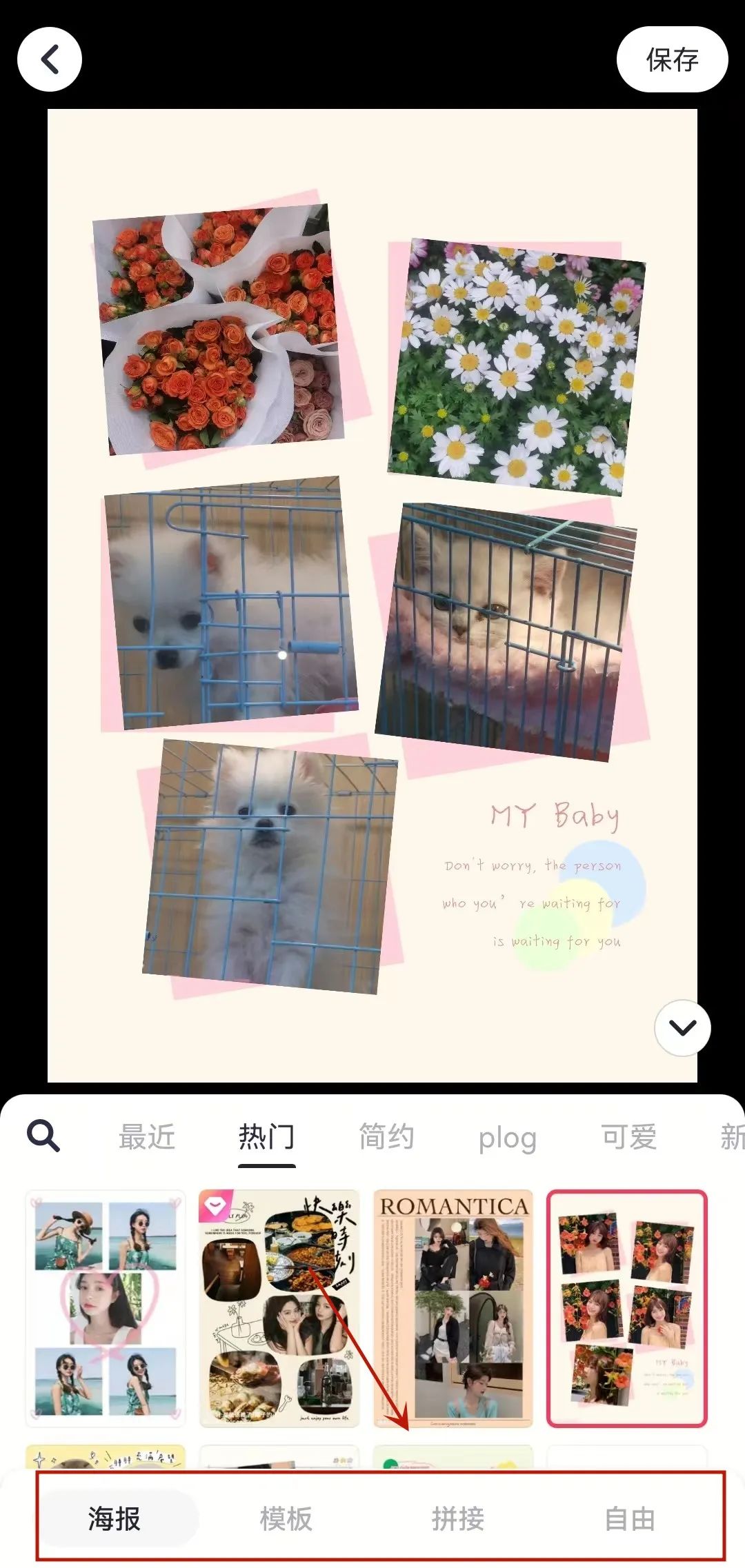 美图秀秀部分拼图模板是免费的,可以选择使用,制作好的图片点击右上角【保存 】即可。