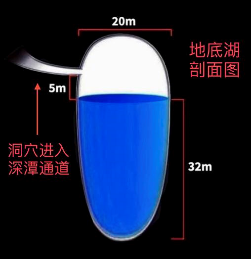 此处深潭是个活水,根据后来潜水人员推测,大约与地底暗河相通,但潜水员在水底并未找到通道口。