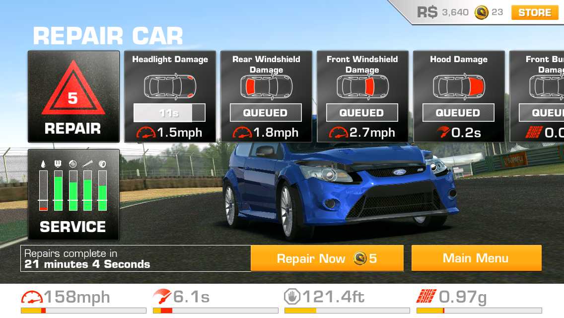 首先,为了让玩家利用碎片化时间去体验游戏,《真实赛车3》在内部设定了一系列的保养和维修功能。 只要你跑过几场比赛之后,车辆就会出现“战损”,而你则需要花费金钱来使车辆保持最佳状态。可除了游戏内的金钱外,你还需要花费大量时间去等待!所以在不少玩家口中,《真实赛车3》又被称之为“真实修车”!