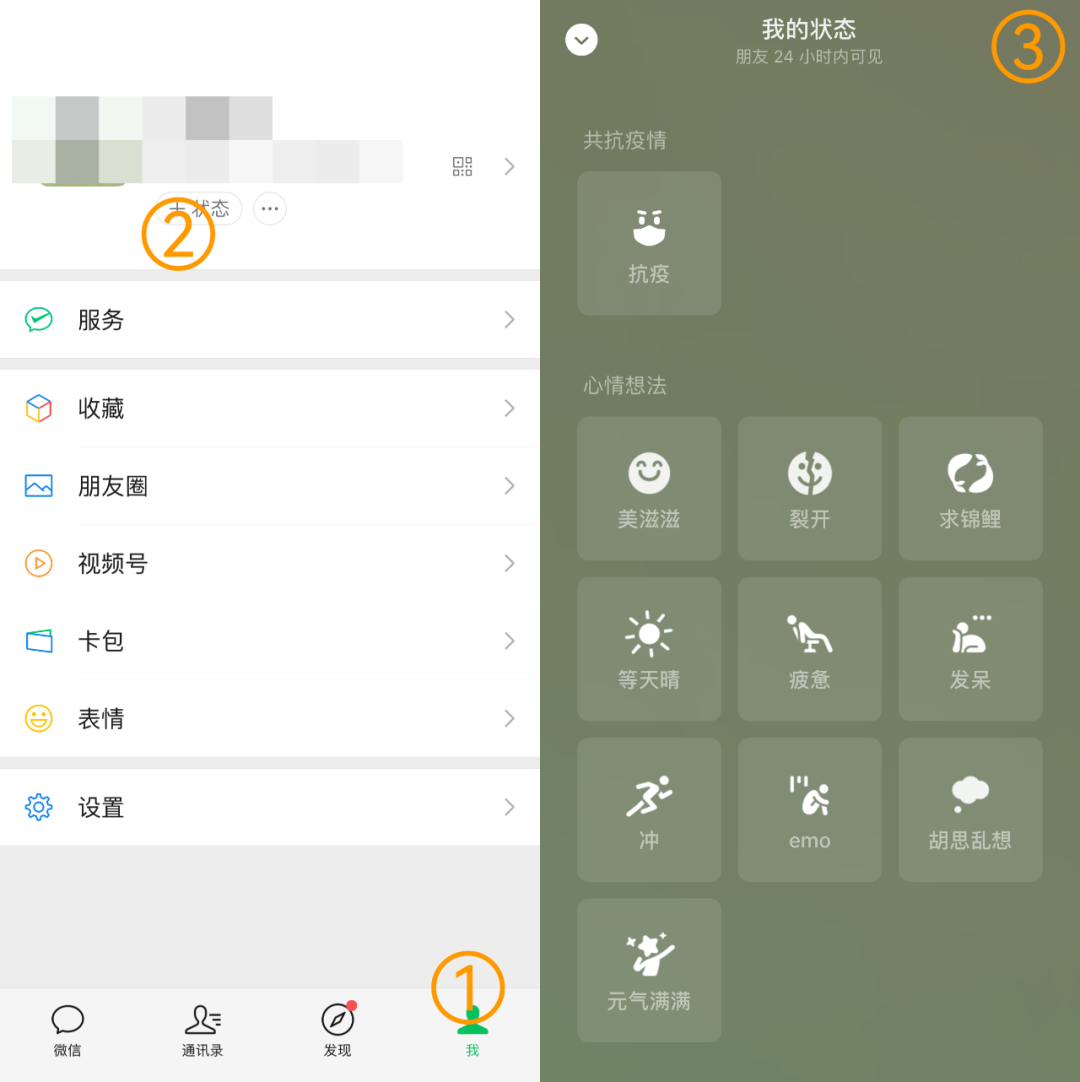 最新版本的微信状态,可以由一张背景图和一张表情图组成的。