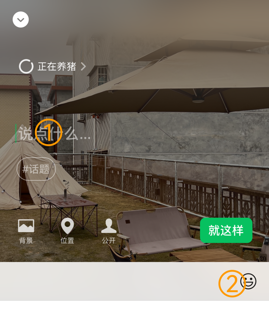 添加好背景之后,咱们在「说点什么...」的位置点一下,接着点表情按钮。