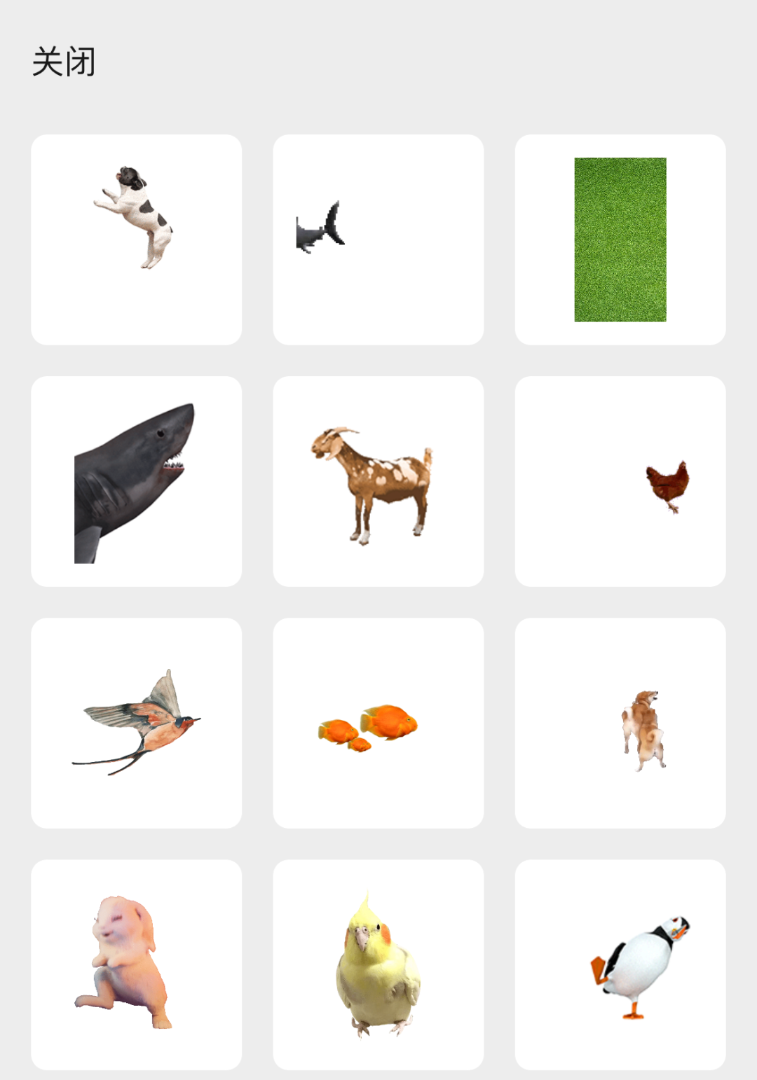 小猫小狗、小鸡小鸭、小鸟小鱼,微信都给大家准备好了,挑一个与场景图最搭的就 OK 啦。