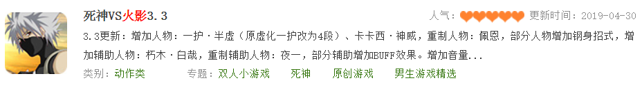 而我们小时候真正玩过的《 死神 VS 火影 》,距离上次更新已经过去了 4 年。