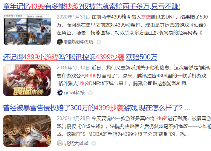 记得前几年,在新闻上偶尔看过几次 4399,基本都是些涉及抄袭打官司的。