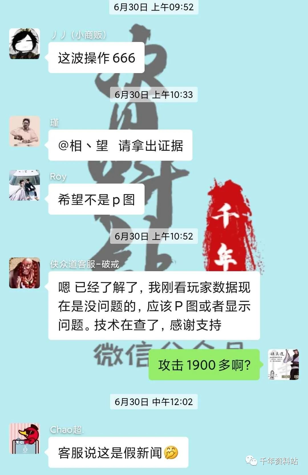 关于此次天人合一事件,侠众道客服回答为显示错误,已经修复完毕,但是仍然有很多玩家将信将疑,据玉麒麟所言,从那天开始半个多月以来,天天有玩家询问是否玉麒麟是不是侠众道的托,或者是后台老板 ,看官们有什么要说的点这里留言