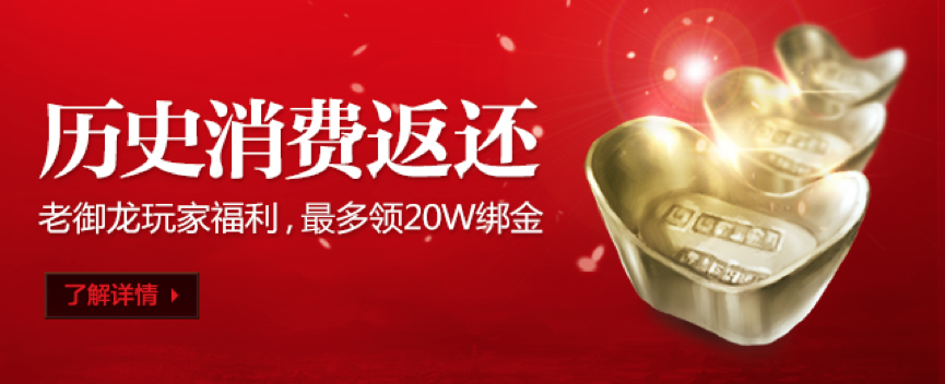 历史消费返还——未领取返还的来玩家,以往你在游戏中的消费都可返还到今日开启的【九五至尊】【对酒当歌】新区账户内,让你新区秒成高富帅!