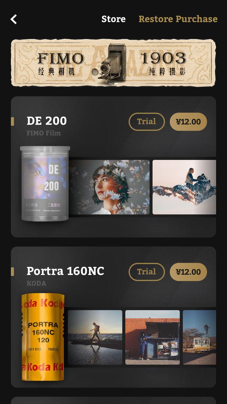 FIMO主打胶卷复古 ,相机界面复古,镜头甚至仿古地进行拉远拉近,可以更换5种免费胶卷,其他的就要付费了。可以直接拍摄,也可以上传照片,同样最后的照片也充满复古感。
