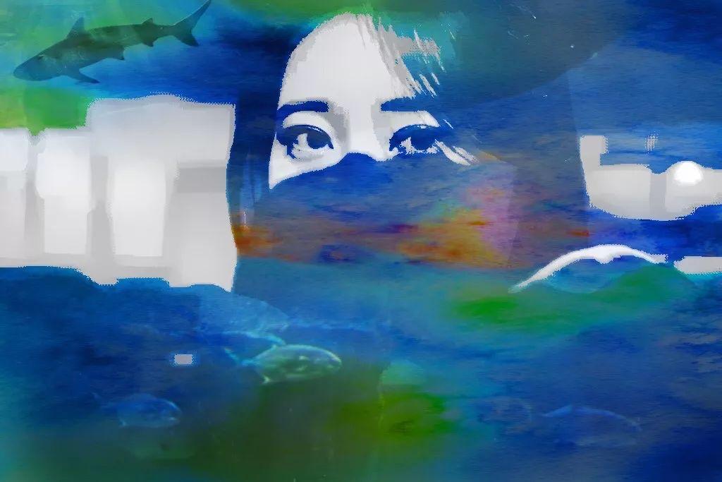 这是我用snapseed双重曝光功能做出来的图片,一共用了3张图,作品名嘛,就叫少女的海洋幻想吧