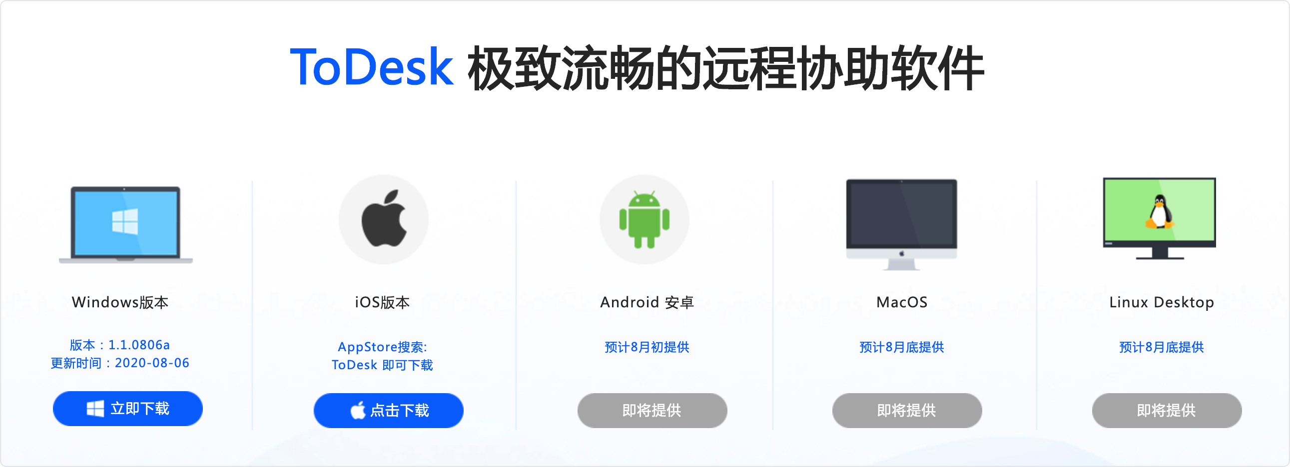 ToDesk 目前已经上线了 Windows和iOS版本,官方表示 Android、macOS及Linux 的版本即将上线。