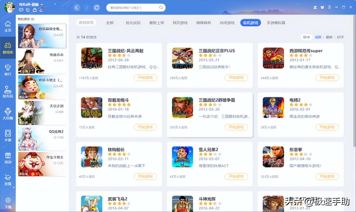 QQ游戏大厅还能玩像热血合击、帝王荣耀、魔魂之刃、传奇霸主、仙梦奇缘。青云诀2等网页游戏,还能玩像三国战纪、电精2、铁钩船长、雪人兄弟、形意拳等街机游戏。