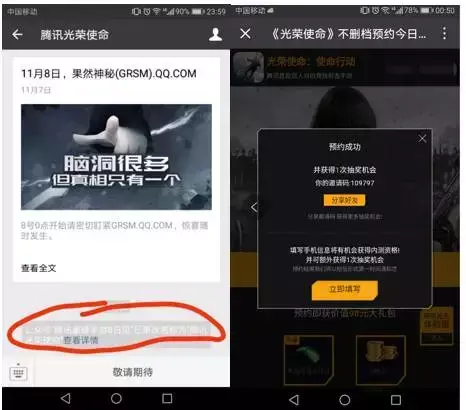 腾讯即将上线的吃鸡手游,到底是什么终于水落石出。军武菌一直在跟踪这个游戏的最新消息,腾讯首先是网址由http://chiji.qq.com变成 http://crsm.qq.com ,宣传图也从鸡头变成了扛枪的战士,至于游戏的名称,很多热心的伙伴们直接给出了“光荣使命”,这个名字。事实证明这些伙伴是正确的。就在11月7日晚23:48,官方微信公众号正式更名为“腾讯光荣使命”。