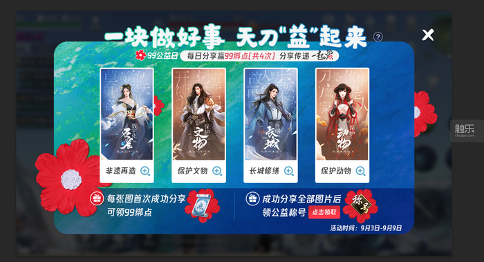 几乎所有游戏都会使用游戏化的方式让玩家们了解公益项目,比如《王者荣耀》。在这次99公益日中,《王者荣耀》中的英雄妲己就“化身为公益大使”。妲己会带领玩家在游戏中收集长城保护拼图,玩家可以在活动中领取专属小红花。玩家每解锁一张拼图,就会解锁一条关于长城的小知识。玩家可以在整个活动过程中进一步了解长城。而了解本身就是力量。