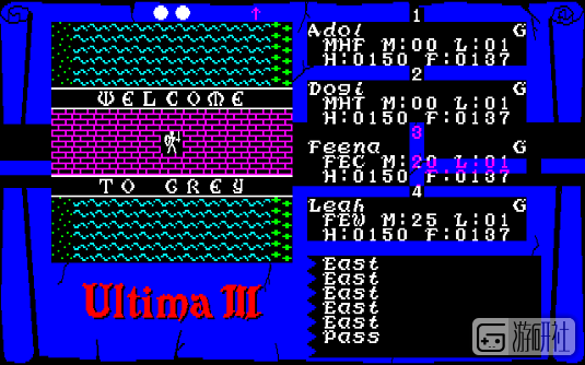 不仅仅是游戏内容没有中文,连游戏操作也要通过键入英文指令完成。拿《创世纪》来说,几乎键盘上的每个键都对应着不同的命令,最简单的四向移动也需要输入”go+方向单词”,不懂英文的玩家只能望洋兴叹。