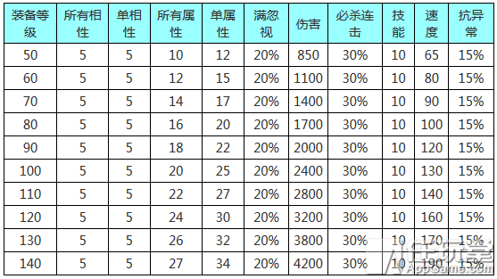 50-140级装备满属性列表: