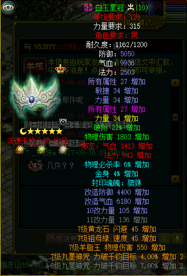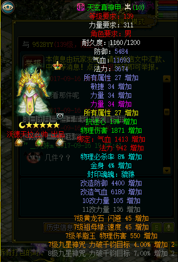 全套改10属性全满装备,是目前问道全服唯一一套改10完美土套。单件评估并不足以体现出改10套的价值,但是整套上评估又没有可以对比的对象,所以价格评估上可能每个人心里都有一个数值,下面先对各个装备的亮点做一些点评,供大家作为参考。