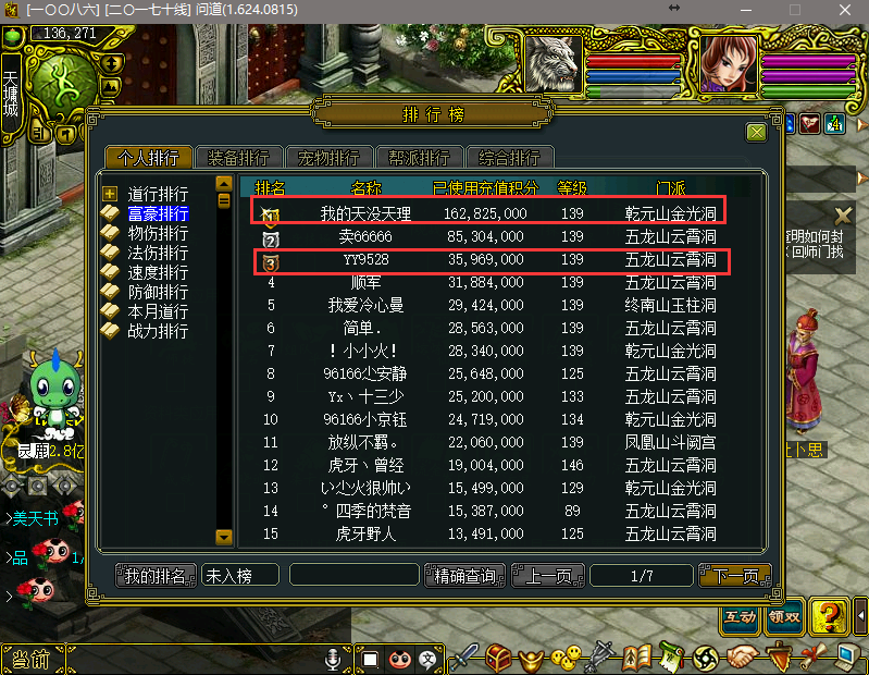 近期问道最劲爆的新闻莫过于,惊现了第二位改10套神豪--梅天理,这次不是一件改10,而是5件哦。问道做为11年经典回合制游戏,全套完美的改10套装并不比梦幻西游的无级别装备和DNF的+18套装便宜哦。
