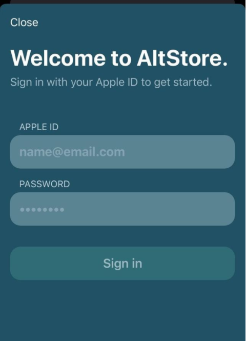 14) 点击打开后进入 AltStore,要求你输入你的apple ID 及密码;