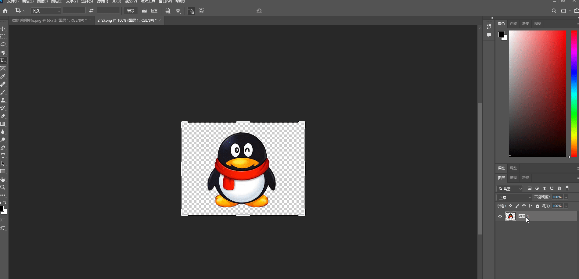 小雷准备好的透明素材 自己想设置为头像的抠图图片比如小雷把QQ作为透明头像,那就用PS把扣好的QQ图片,复制到透明素材的图层上。