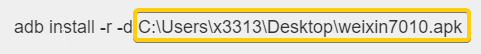 adb install -r -d C:\Users\x3313\Desktop\weixin7010.apk