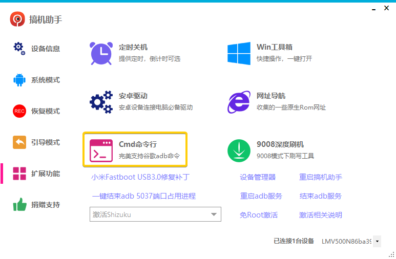 降级方法十分简单,在电脑打开搞机助手,用CMD命令行来实现保留数据降级。