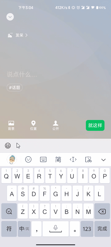 在这个界面点一下【说点什么】,会弹出键盘,接着依次点击【笑脸】和【搜索】。