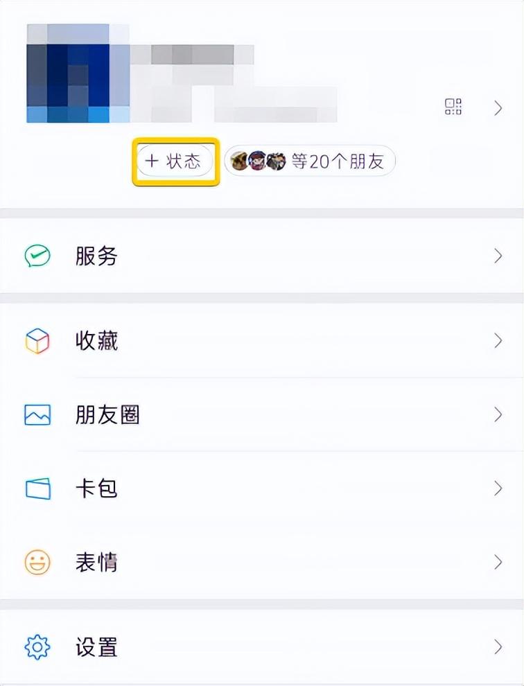 首先咱们打开微信,来到【我的】界面,并点击【+状态】。
