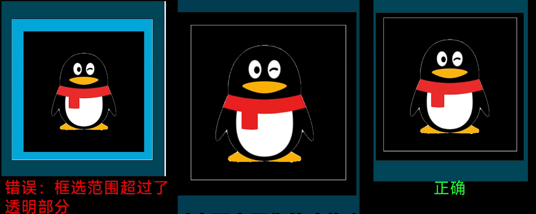 注意喽,框选部分不能超过透明部分,放大到周围全黑准没错。