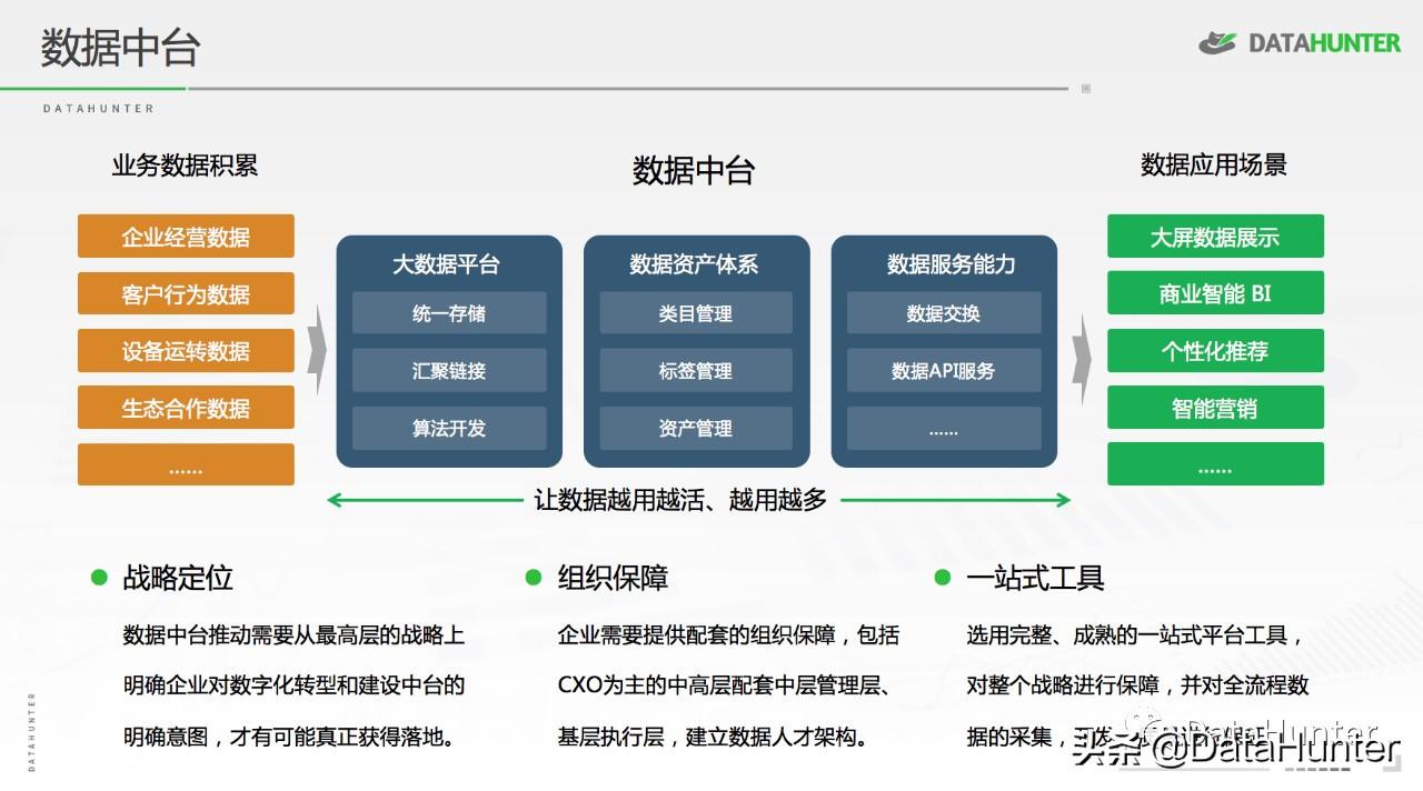 2.数据中台是一种支持以用户为中心的持续规模化的创新,并想方设法持续提高企业对于⽤户的响应⼒;