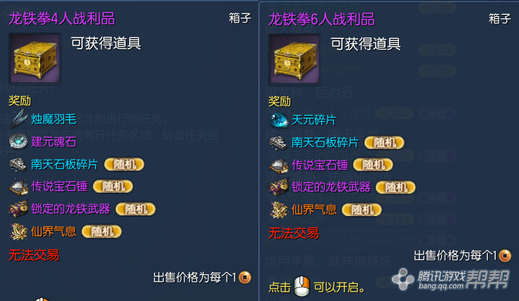 4人模式:建元魂石*1(51金) 烛魔羽毛*1(18金)