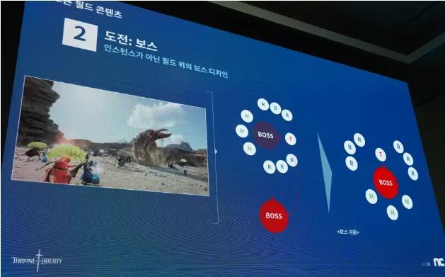 挑战内容可以选择战场上的BOSS RAID。 比如沙虫 Boss 女王布兰迪尔,Boss设计考虑到无法预测的攻略玩家及PvP可能发生的场合,不会设计得过于复杂。