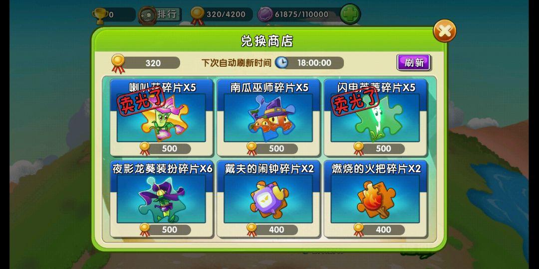 ④对战:这是零氪玩家获得高阶植物的必备,前期进去那可真是一无所有,用来换碎片的奖牌也没多少,很难,前中期就最好用海鸥僵尸,技能是丢炸弹,好用,打邪恶戴夫和店铺都特别好用。每天可以进去收租升级买碎片,获得植物碎片的最稳定最直接的来源,商店有时候是一个月更新,有时候是两个月