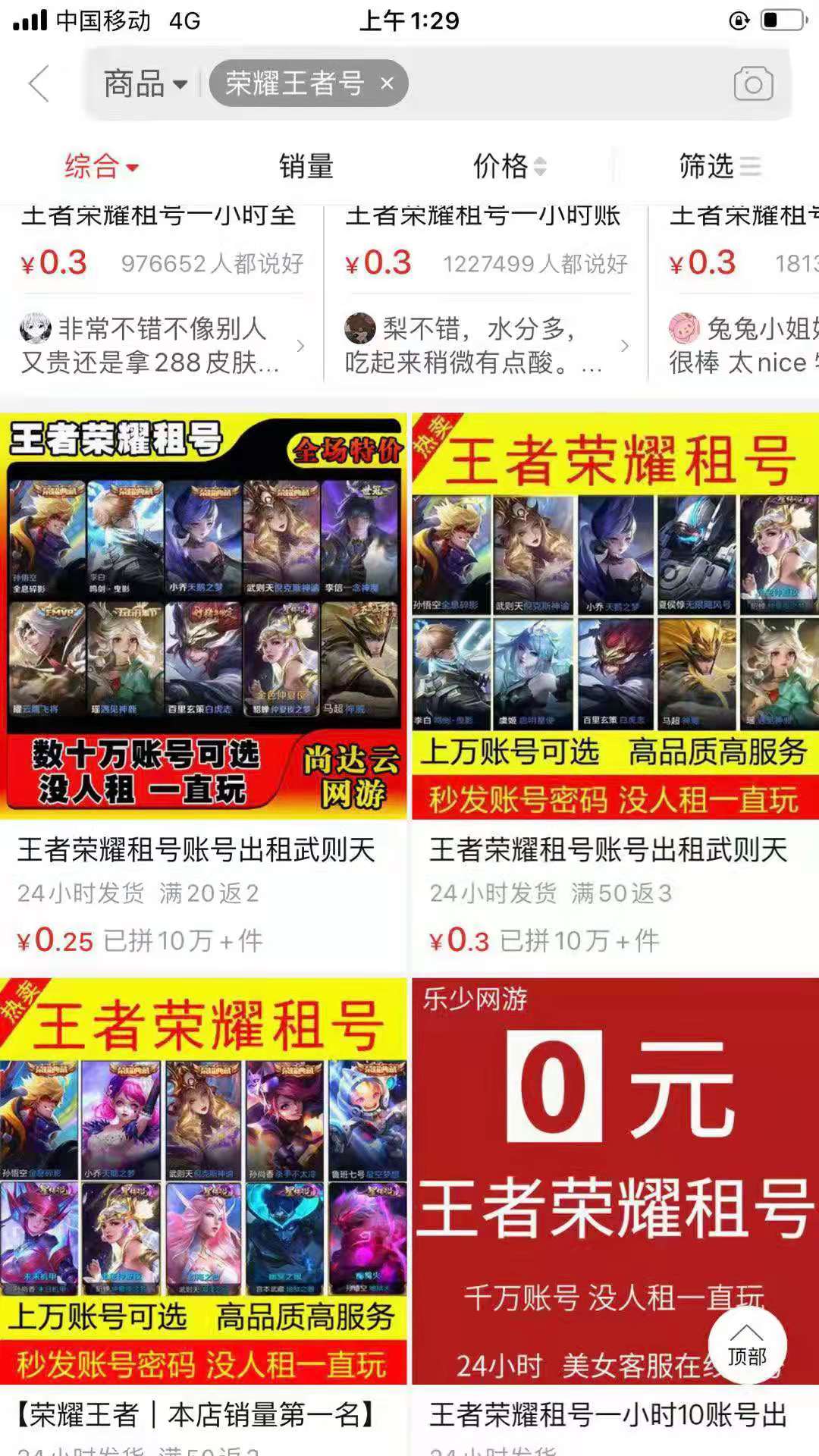 网店批发“无限制”网游账号