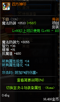 项链目前最好的应该就是四方神印了,增加属强并且还有7%的白字附加伤害。