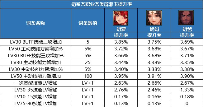 由于本次以下为计算器得出的辟邪玉词条对于奶量的提升率表格: