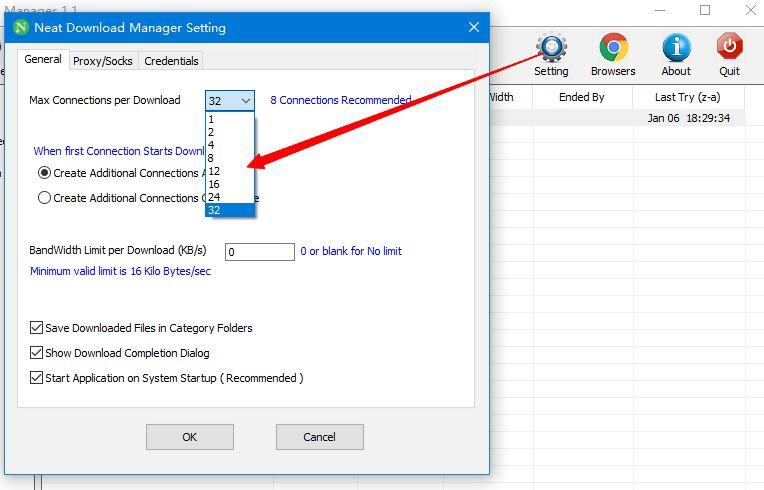 在设置 Setting 中,将最大连接数从 1 改成 32 即可。