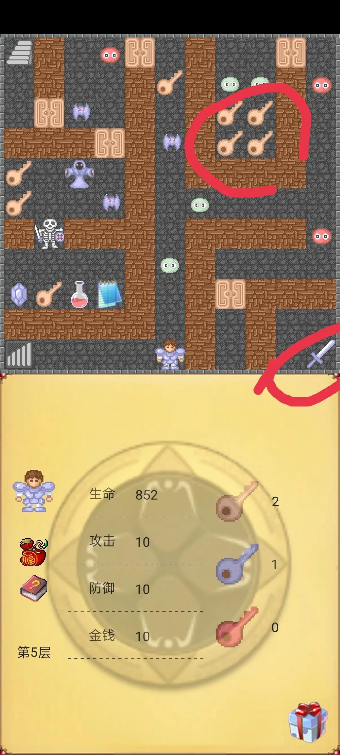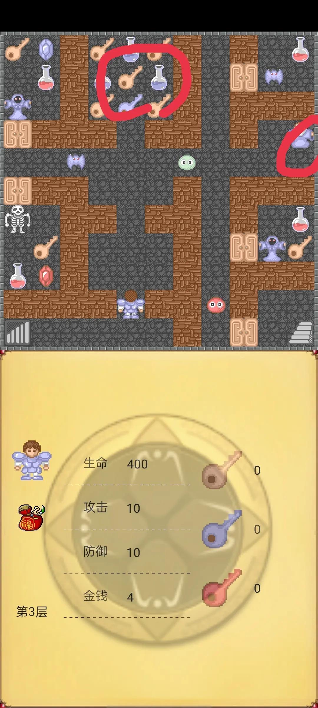 第五步回到第6层按下图路线走,然后回到第3层击杀下图所示怪物,这时候状态应该和最下面图差不多,攻击防御必须一样,血量可以有偏差。