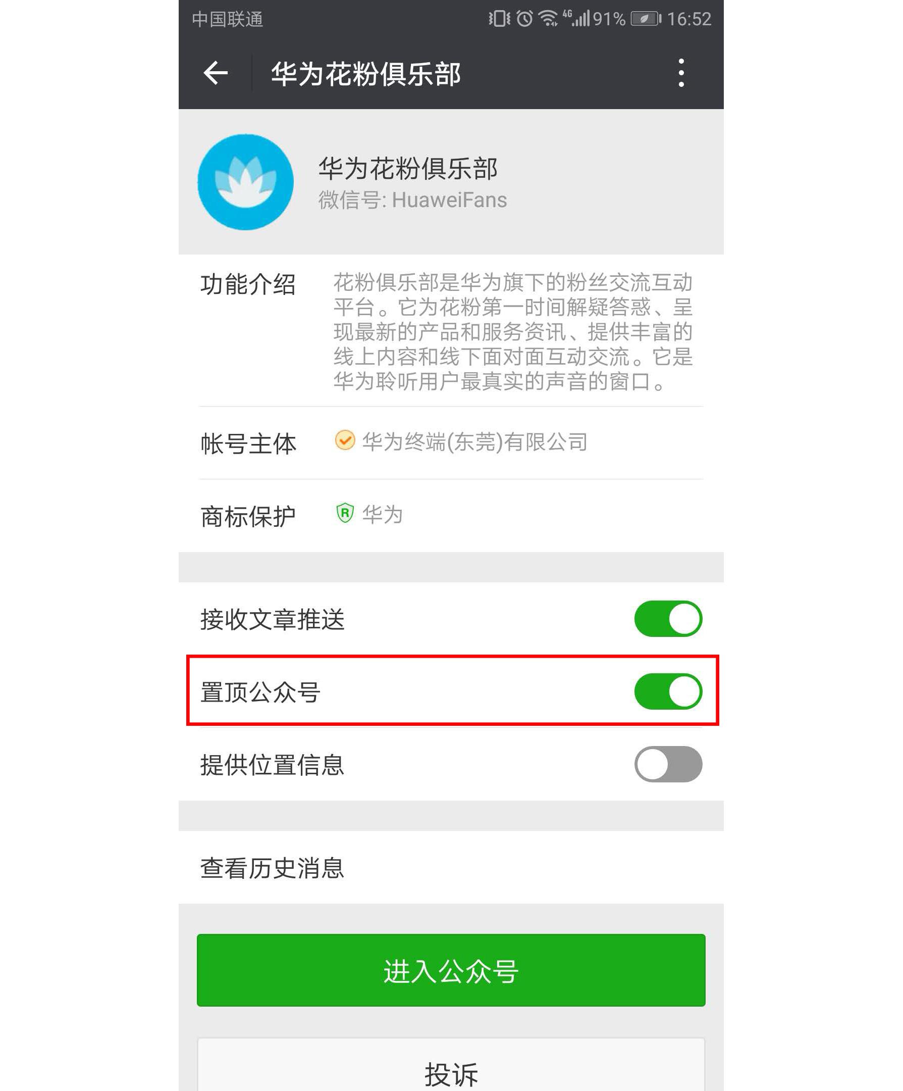 当然了,微信也是获取资讯的一个场所,不管你是刷朋友圈,还是看公众号。别忘了把【华为花粉俱乐部】置顶哦,随时获取花粉最新资讯。