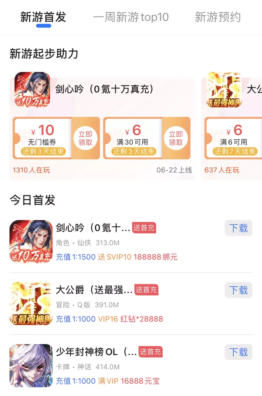 注册送首冲,首充直接送。新人专享福利一键领取,各种礼包、礼券随便用。助你手机游戏快人一步,签到做任务还能获得平台币