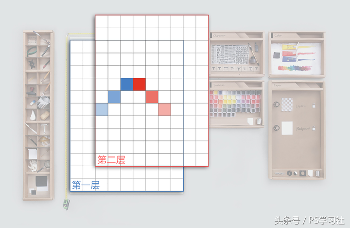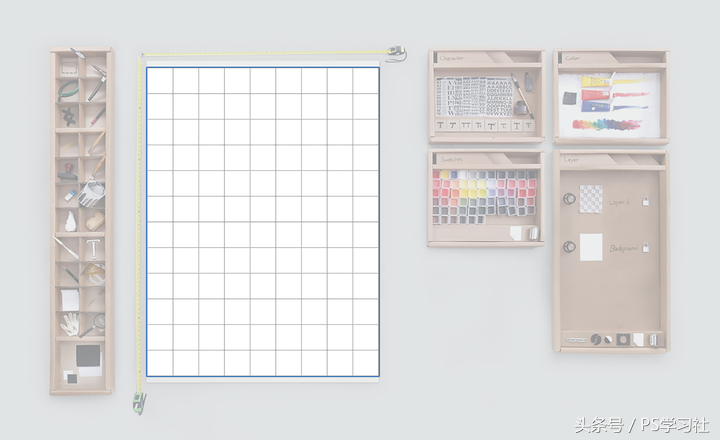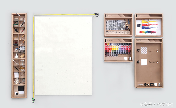 PS相当于一块画布,周围都是工具。