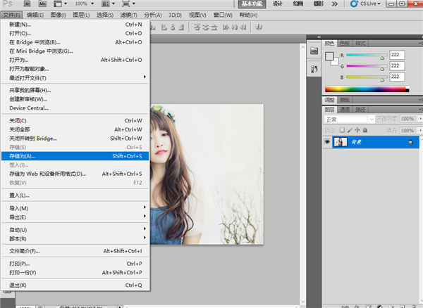 当我们处理完图片之后,我们可以点击【文件】——【储存为】 或者按快捷键Ctrl+S 快速储存哦!