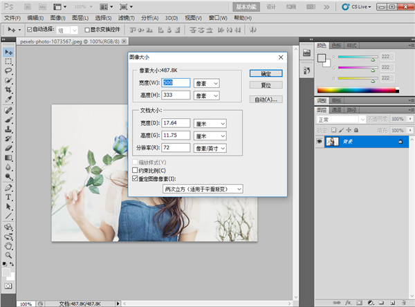 打开图片之后,如果我们需要对图片本身的大小进行修改的话,我们可以点击【图像】——【图像大小】或按快捷键Alt+Ctrl+I快速打开图像大小的窗口,在这里可以对图像的高度和宽度进行修改,要注意的是,修改之后是会影响图像的像素的哦!