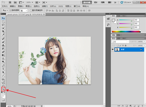 首先将图片导入PS中,准备好替换背景。