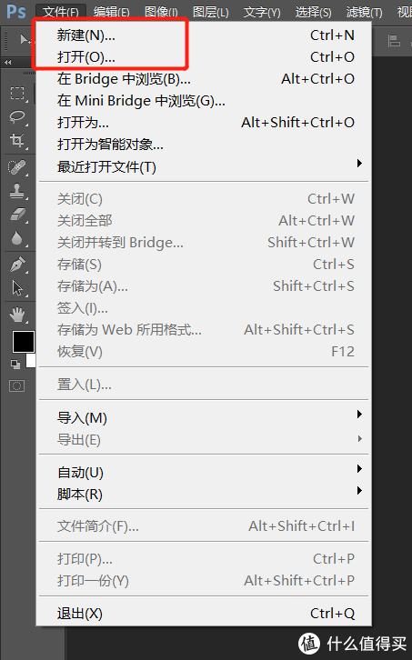 认识了这些之后,我们就可以在“工具栏-文件”里打开一张图片或者是新建一个文件了。