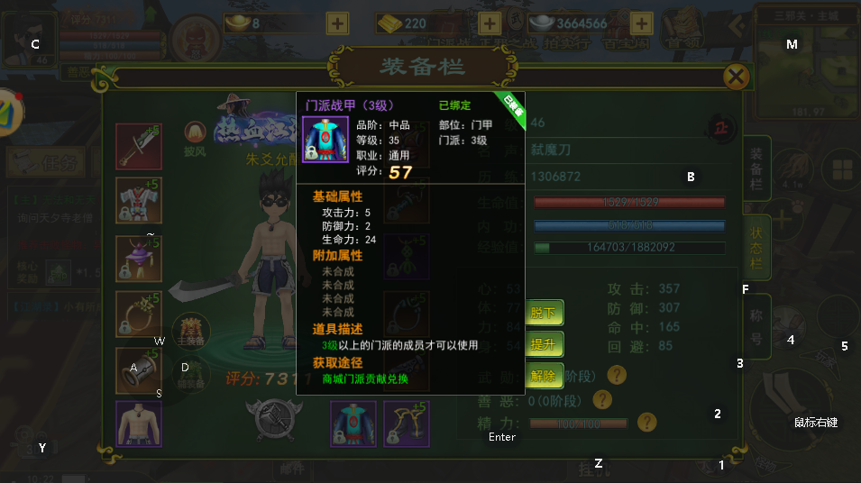 我们还可以进行门派贡献来一起升级我们的门派,而且门派贡献可以获得贡献点,然后换取更高级的道具和材料。最特别的是,我们可以拿贡献点换门甲,也算是一种披风,穿戴门甲可以给我们增加属性,当然等级越高的门甲,加成属性也就越高。
