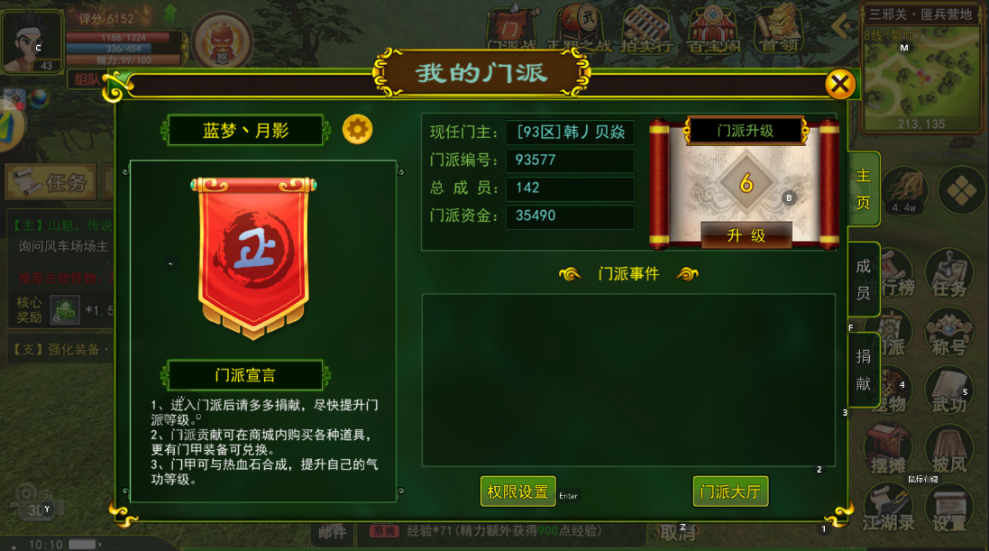接下来我们讲讲热血江湖之独步武林中一个每周活动——门派战。