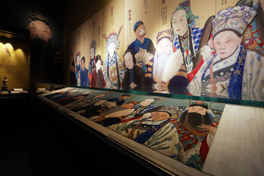 “三国戏”自创演之初至今千年,将故事的精彩与唱词、曲调、美术、表演的美熔铸为一,表现出蓬勃的艺术张力与历久弥新的生命活力。于是,在第一单元“案下源考”中,观众得以看到正统“三国戏”自元杂剧创演至今,举目多样、情节丰富、内涵明确。在展览的展板上,还能领略各种戏曲剧种中“三国戏”,京剧、粤剧、川剧、昆曲、秦腔……共八种剧种在该单元中得以呈现。