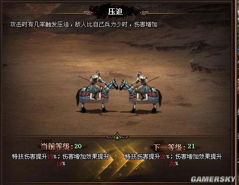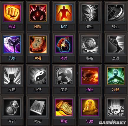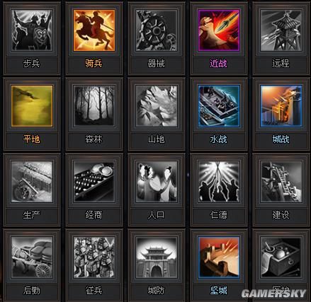 精兵:增加兵种特性效果。以常用的铁骑兵为例该属性能增加特技威力。