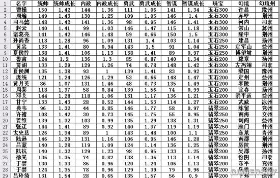 以下是我统计的名将幻境区域属性成长及珠宝数量统计: