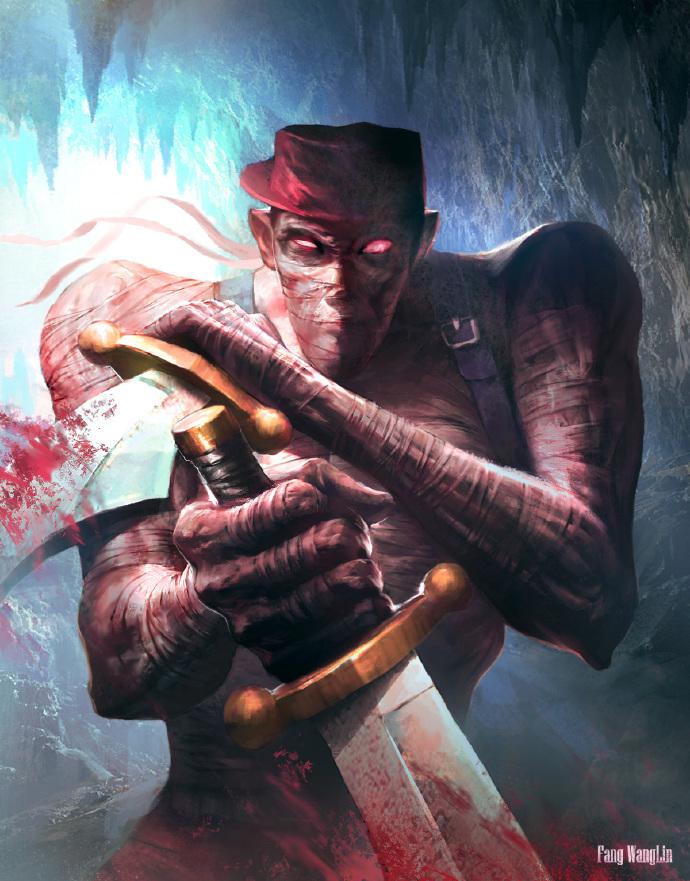 这就是我们通常叫的“木乃伊”,根据官方的说法,他是一个神秘的“外星人”,但即使是外星人也不至于全身都缠着纱布吧,所以,他当年应该是在练习自己那把拥有腐蚀性的小刀的时候误伤了自己,而且还不止一次,因此身上都被腐蚀了,所以就缠上了厚厚的绷带……